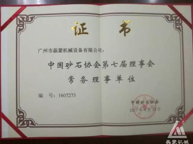 2017年成為“中國砂石協(xié)會第七屆理事會常務(wù)理事單位”